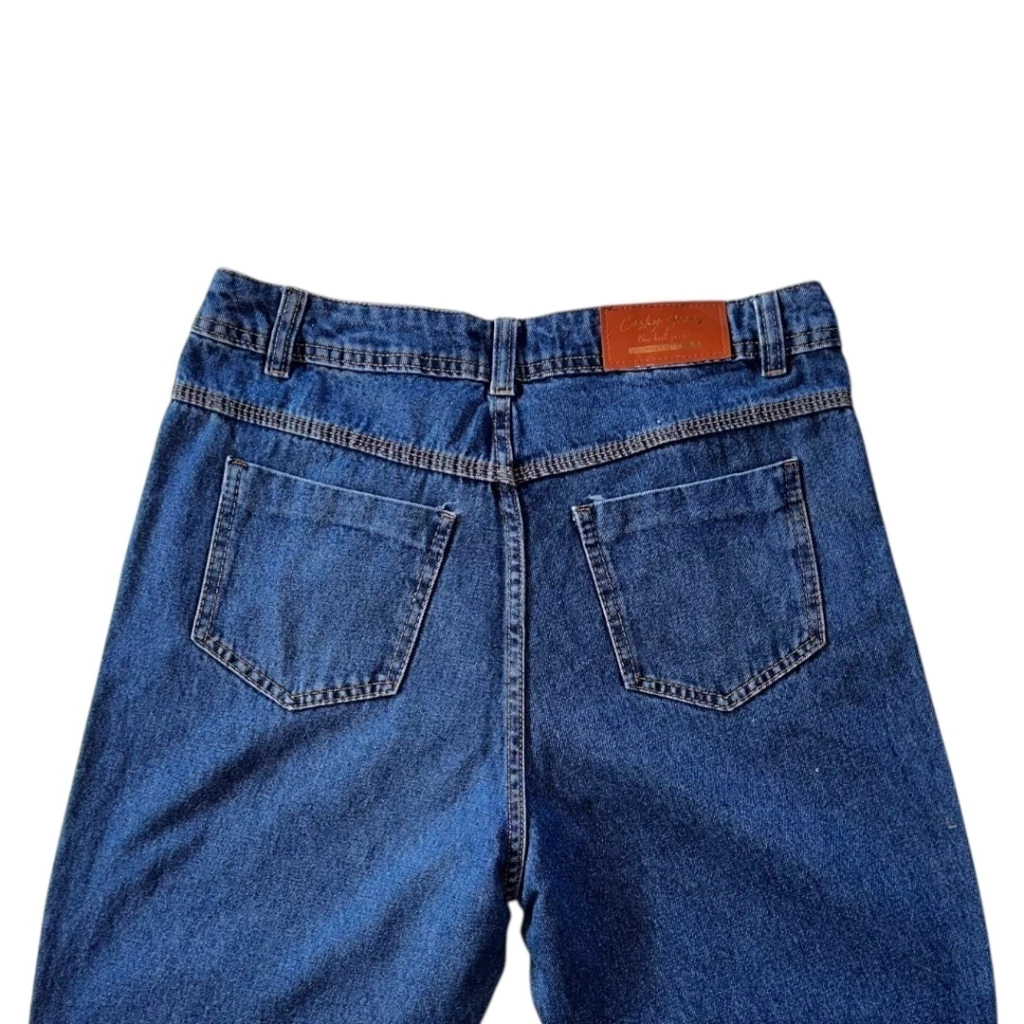 Detalhes do Produto: Calça mom jeans, cintura alta, modelo cigarrete.